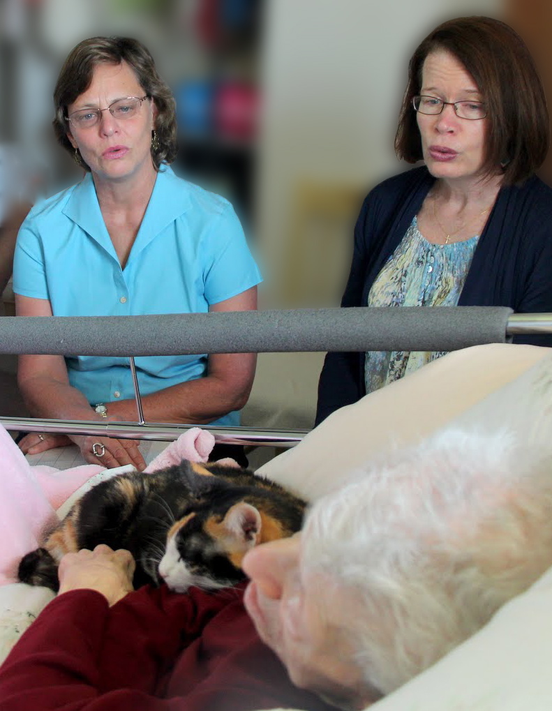 WHERE WE SING: We sing regularly for clients of the Menlo Park Division of the Veterans Administration, the Palo Alto VA hospice unit, Mission Hospice and Home Care, Pathways Home Help and Hospice, and other hospice organizations. We serve clients primarily in southern San Mateo County and northern Santa Clara County, most often from Palo Alto north through Burlingame. We have visited several hospitals, including Stanford Hospital, Palo Alto VA Medical Center, Sequoia Hospital, Kaiser Redwood City, El Camino Hospital, and Mills Peninsula Medical Center. We have been honored to sing at services of remembrance for our hospice partners, our local veterans, and beloved clients.